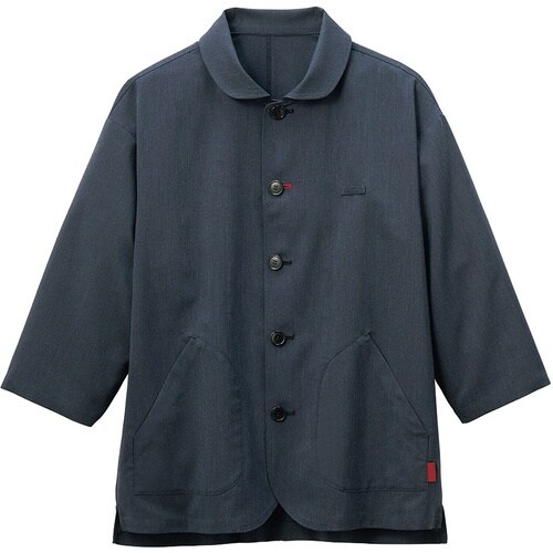 衛生対策機能を備えた、ナチュラル感のある杢調ショップコートです。塩素系漂白剤による退色を防ぐ素材機能から、元の色合いが持続します。水仕事など、腕まくりの手間なく作業ができる七分袖。 |