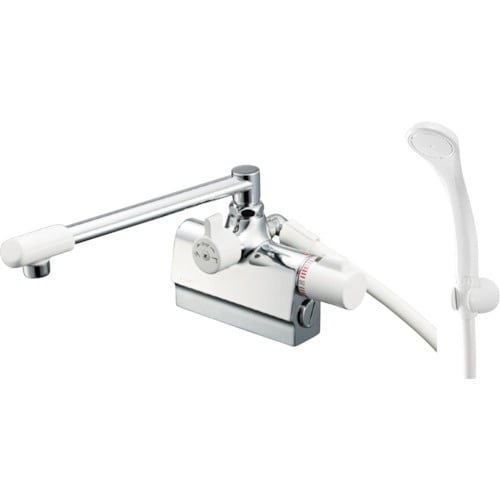 サーモカートリッジの働きで湯水の混合量を自動で調整し、常に一定の温度を保つことが出来ます。水の吐水、止水が簡単に操作出来ます。触れても熱くない断熱キャップ付きです。