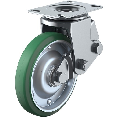 ユーエイ プレート式 自在 クッションキャスター 緑ゴム 車輪径200mm SKYタイプ SKY−2S型 取付寸法133×86(125×62) SKY2S200WFGRA1 1個