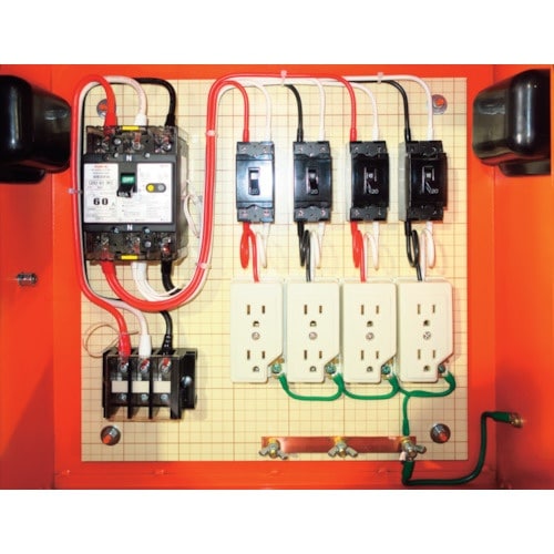 仮設電灯分電盤の標準型です。大阪府の自社工場で設計、製造しています。部分的な修正・変更から、フルオーダーまで、別作対応可です。工事現場のコンセント、照明や工具等の電源に。 |