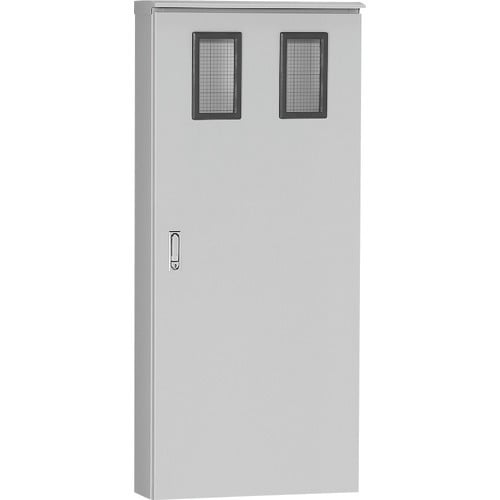 耐食性に優れたステンレス屋根付屋外用引込計器盤キャビネットです。電力量計200A・250A単独計器が収納可能です。 |