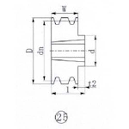 データム径(mm):280 | 溝数:3 | 図面番号:25 | 適用ベルト:C、CX | 材質・仕上げ:ねずみ鋳鉄 | 単位:1個