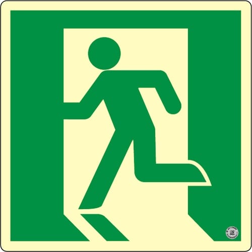 高輝度蓄光式誘導標識の最上級認定基準S50級を取得しています。安全標識板JIS規格Z9107の高輝度基準をクリアした蓄光標識です。白色蛍光灯200ルクス20分間照射で約8時間視認可能です。 |