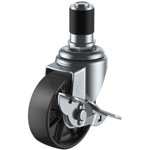 ユーエイ 差し込み式 自在 キャスター 黒ナイロン 車輪径65mm ストッパー付き Sタイプ STF−S型 パイプ径24 STF65BNS24P 1個