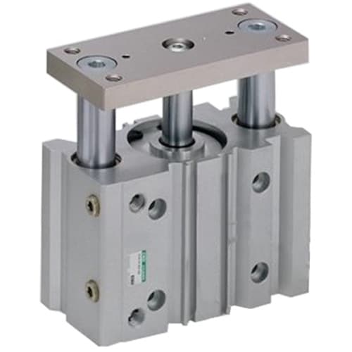 横荷重や偏芯荷重に強い製品にするために、ガイドロッド軸受部を改良するとともに、ベアリング構造を変更しました。 従来品に比べ耐荷重性能が向上し、さらに安定作動も実現しました。 |