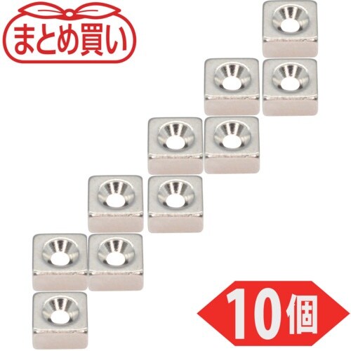 TRUSCO まとめ買い ネオジム角形磁石 皿ねじ穴付 6MM×6MM×3MM M1.6 10個入 T06K03M1.610P 1Pk(10個)