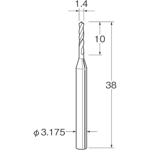 リューター ツイストドリル(超硬合金)刃径(mm):1.4シャンク径(mm):3.175 T3014 1袋(1本)