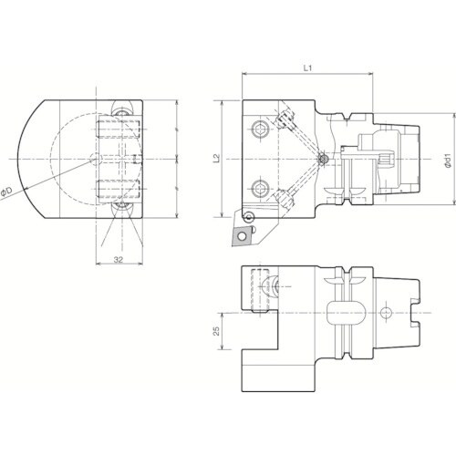 複合加工機用旋削工具(HSK−T)です。角シャンク取り付け用ホルダ。