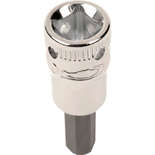 セーフティーロック用の穴が4か所に空いた、高所作業向け1/4ドライブミリサイズヘックスソケットドライバーです。