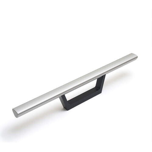 型にはまらない意匠と無垢独特の重厚感があります。三角柱のバーと、中央に配されたブラケットが組み合わさったハンドルです。