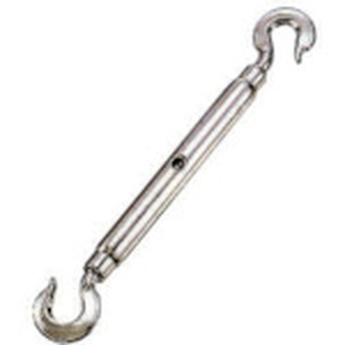 枠を回転させると、ゆるめたり、締めたりすることができます。枠式とは違い、パイプタイプでネジ部分が露出していないので、より装飾的です。ワイヤロープの張り具合の調節に。 |