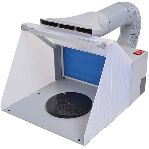 塗料のニオイをWファンが吸って外に出す、さらにLEDライトがついて作業しやすいブースです。 |