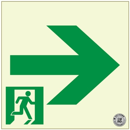 アルファフラッシュ 非常用標識 中輝度蓄光式誘導標識 硬質塩ビ板タイプ 消防認定品(NP−014号) 非常口→ TPSNシリーズ 200mm×200mm×1.4mm TPSN941 1枚