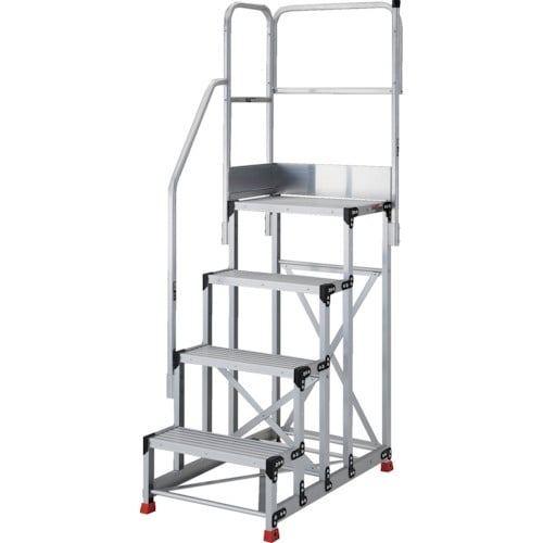 TRUSCO アルミ製作業用踏台 4段 高さ1.2m 天板寸法600×400 ステップ奥行300mm 階段片手すり天場二方付き TSF463012TKL300 1台