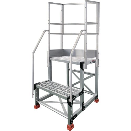 作業用踏台とフルセット手すりのセットになります。本体のみアルマイト仕上げです。(TSFC、TSFGRは支柱のみ)手すり高さは900mmと1100mm兼用タイプでどちらの高さも取付可能です。 |