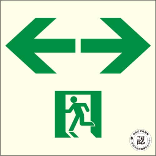 アルファフラッシュ 非常用標識 中輝度蓄光式誘導標識 ステッカータイプ 消防認定品(NP−013号) ←非常口→ TSN943 200mm×200mm 厚さ0.25mm TSN943 1枚