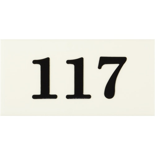 表示内容:117 | 取付仕様:粘着テープ | 縦(mm):35 | 横(mm):70 | 厚さ(mm):2 | 色:数字黒 プレート白 | タイプ:…