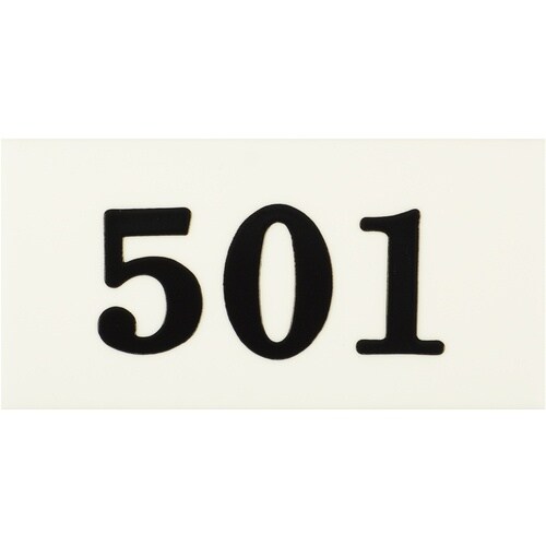 表示内容:501 | 取付仕様:粘着テープ | 縦(mm):35 | 横(mm):70 | 厚さ(mm):2 | 色:数字黒 プレート白 | タイプ:…