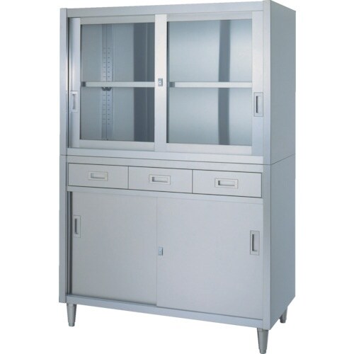 シンコー ステンレス保管庫 二段式アジャスト付 VADG型 (引出・上ガラス戸・下ステンレス戸) 1200×450×1750 VADG12045 1台