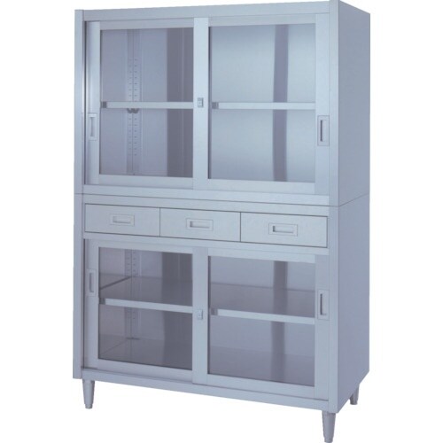 シンコー ステンレス保管庫 二段式アジャスト付 VADGG型 (引出・上下ガラス戸) 1800×450×1750 VADGG18045 1台