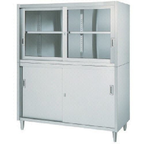 シンコー シンコー ステンレス保管庫 二段式アジャスト付 VAG型 (上ガラス戸・下ステンレス戸) 1800×450×1750 VAG18045 1台 A08N-9121