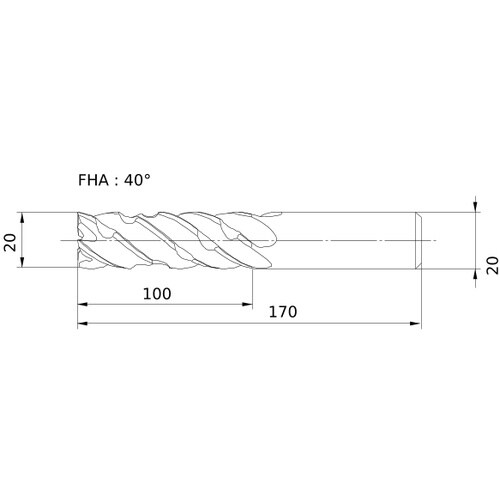 刃数ZEFP(枚):5 | 切削径DC(mm):20 | 最大切込みAPMX(mm):100 | 機能長さLF(mm):170 | マシン側接続径DC…