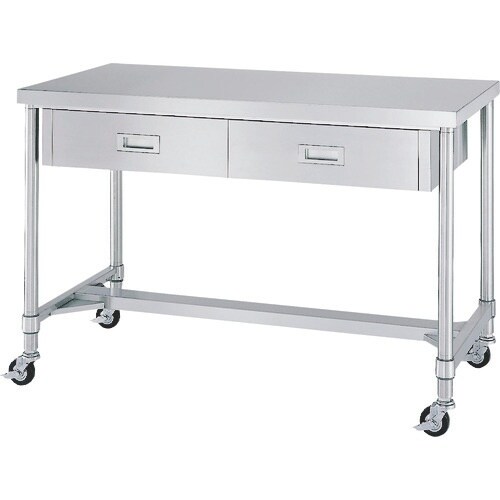 シンコー ステンレス(SUS430)作業台片面引出付H枠キャスター付 φ100ゴム車 1500×900×800 WDHC15090R100 1台