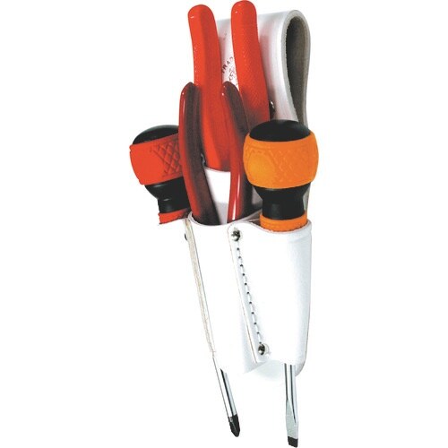 二重縫いのホワイトシリーズです。使い込むほど道具になじむ牛皮製です。国産品で、耐久性、耐摩耗性に優れています。ニッパー・ラジオペンチ・ペンチ・ドライバー150mmー200mm用。 |