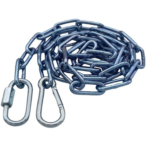 溶接チェーンは切断済み、両側にフックを取り付けています。スチール製ですが、ユニクロ鍍金を施しており防錆性・耐候性に優れています。転倒防止、進入禁止、境界用の仕切りに。
