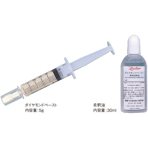 注射器入りでグリース状になっており、希釈液で希望の濃度に薄めて、ラッピング工具で仕上げができます。超硬合金、高速度鋼、合金工具鋼など焼入れ後の鏡面、精密、仕上げ、ガラス、宝石類の研磨仕上げに。 |