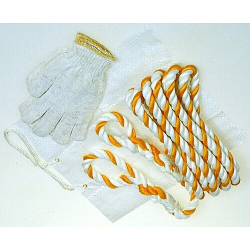 けん引用のロープでし。ロープと作業用軍手と旗のセットです。 |
