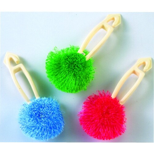 ハンドル付なので油汚れの食器洗いでも手がベトつきません。ネット状の繊維なので抜け毛、切れ毛のトラブルがなく、異物混入の許されない、食品工場などでも活躍しています。煮沸消毒できます。 |