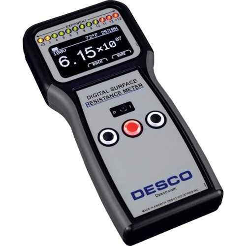 大きなOLED画面で、抵抗測定値および指数・気温・相対湿度・テスト電圧を表示します。表面抵抗の計測に。 |