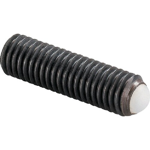 ヘッド無し、完全ボール付セッティングスクリューです。ワークに対して垂直でない場合でも固定、締め付け、サポートなどに。プラスティック球なので、圧力で傷つきやすい部品への使用に。 |