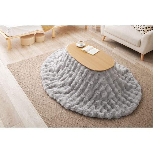萩原 こたつ布団 ポコポコラビットファー ルナ 楕円形 210×170 グレー 270611402 1枚