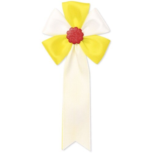 式典の記章です。一般的に赤か桃を招待客、白が主催者側になります。