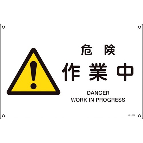 日本緑十字社 緑十字 JIS規格安全標識 危険・作業中 JA−228L 300×450mm エンビ 391228 1枚 A08T-8280