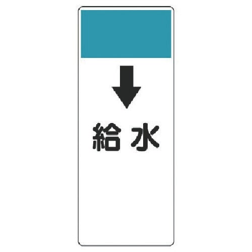 表示内容:下矢印・給水 | 厚さ(mm):1 | 摘要:3mmФ穴4 | 帯色:水色(マンセル値5B 5・9) | 寸法(mm):250×100 | …