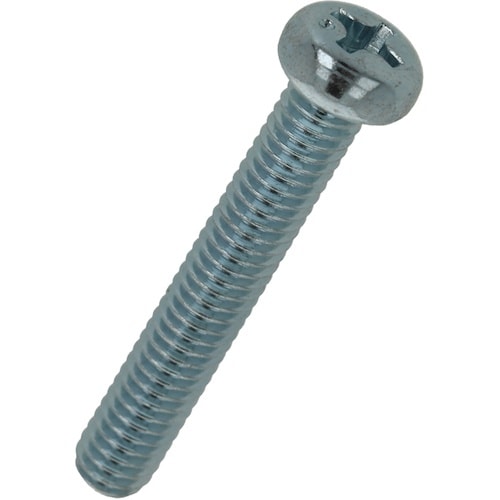 十字穴付きのなべ頭小ねじです。頭部が出ても差し支えない所に使われます。材質は鋼で耐食性向上のため、三価クロメートめっき(薄青っぽい色)がしてあります。生地に比べ耐食性があります。 |