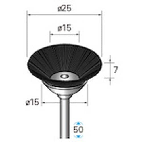 毛材:馬毛 | 外径(mm):25 | 幅(mm):7 | 軸径(mm):3 | 全長(mm):50 | 最高使用回転数(rpm):10000 | 形…