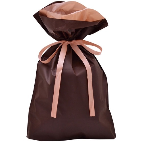 中身を入れて、両サイドのリボンを引っ張るだけで簡単に包める袋です。