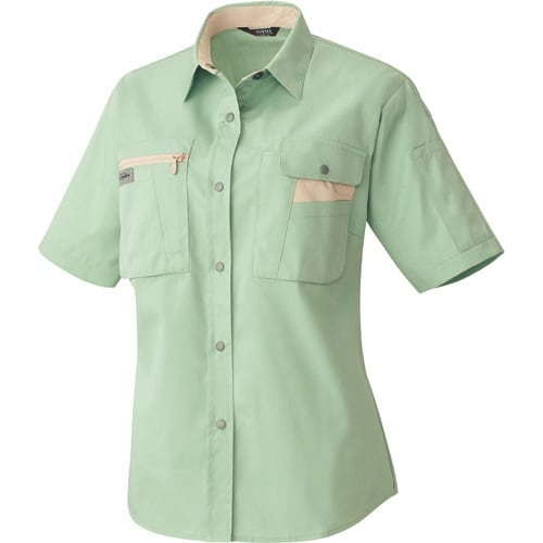 アイトス レディース半袖シャツ グリーン×ライトベ