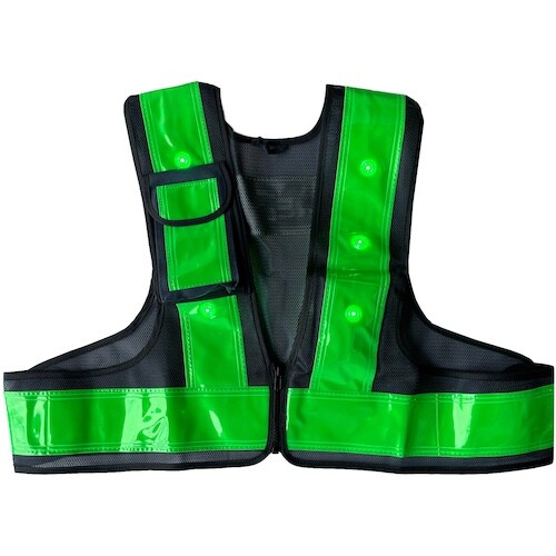 前合せ部分がファスナーなので着脱がスムーズです。 LED11個で夜間の視認性抜群です。