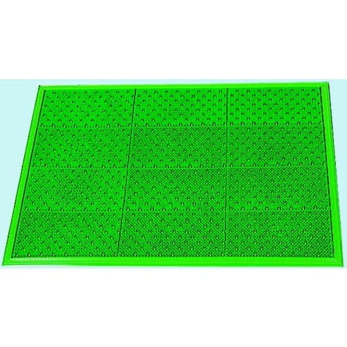 樹脂製の芝状の泥落としマット。丈夫さとソフトな感触のバランスが好評です。