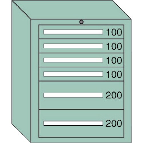 単式レール機構を採用、シンプルで安全なキャビネットです。オールロック機構付きです(全段引出しが同時にロックする機構です)。ラッチ機構付きです(各引出しが勝手に出てこない施錠タイプです。 |