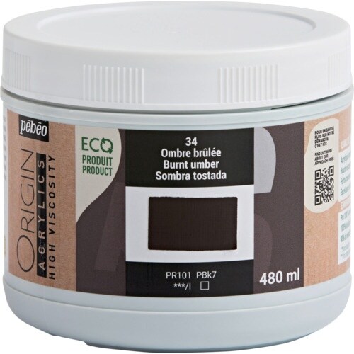 Pebeo エコデザイン アクリリック ORIGIN 480ml バーントアンバー 34 817334 1本