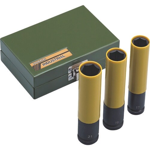 プラスチックカバーがホイールを傷つけないインパクト用ソケットです。粘性に優れ、かつ高トルク高耐久です。ホイールナットの締め付け緩めに。 |