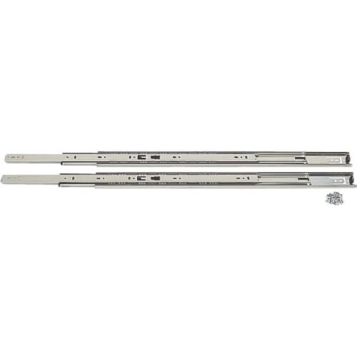 インナーメンバーを完全に引き出せる3段引のスライドレールです。レバー操作でインナーメンバーを取り外せます。レール全閉時にその状態を簡易的に保持します。