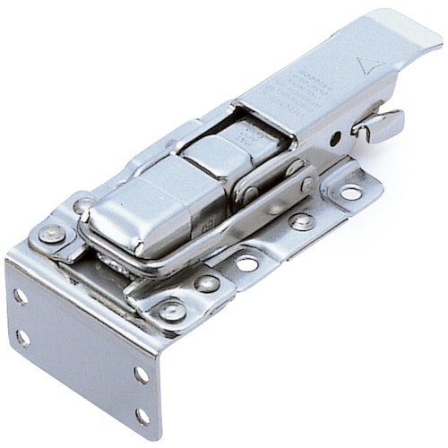 三方向からの揺れをしっかりとおさえるデッドボルト機構により、耐振性が抜群です。受座フックはL字形で、外コーナーに取り付けできます。セーフティーロック付仕様と、南京錠取付用穴付仕様があります。 |