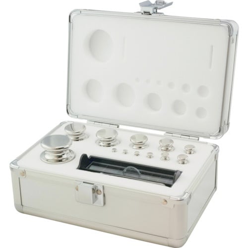 表わす質量:1kgセット | 精度等級:F2級 | 証明書:一般校正証明書付 | ケース材質:アルミ | 材質・仕上げ:非磁性ステンレス・スチール(S…
